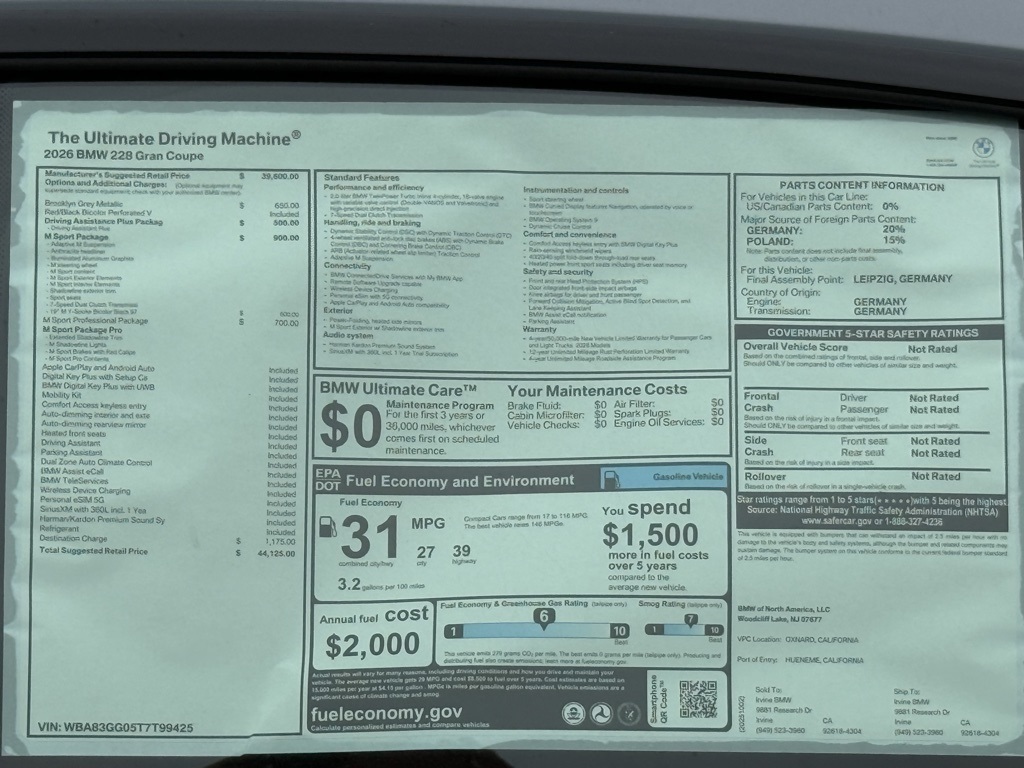 2026 BMW 2 Series 228 Gran Coupe at Irvine BMW