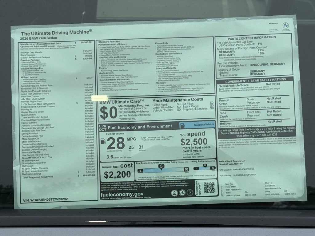 2026 BMW 7 Series 740i at Irvine BMW