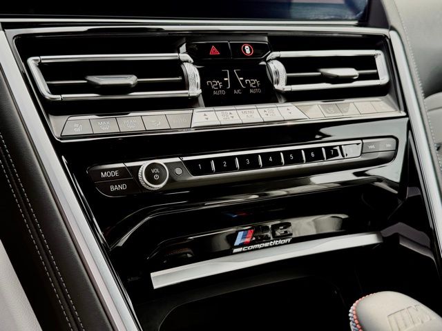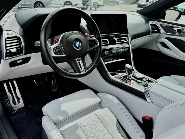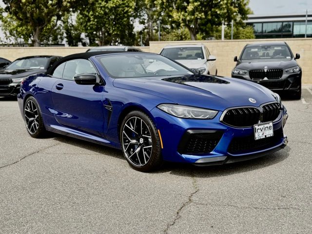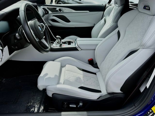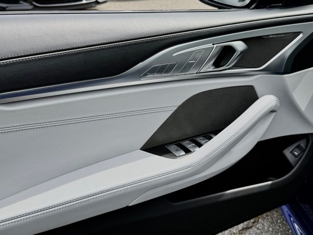 This 2023 Marina Bay Blue Metallic BMW M8 Competition AWD is well equipped and includes these features and benefits.Connected Package Pro, Driving Assistance Package (Active Blind Spot Detection, Active Driving Assistant, Active Park Distance Control, Lane Departure Warning System, Parking Assistant Plus, Rear-View Camera, and Surround View w/3D View), M Driver's Package, Live Cockpit Pro (incl. Navi), 16 Speakers, 4-Wheel Disc Brakes, ABS brakes, Adaptive suspension, Air Conditioning, Alloy wheels, AM/FM radio: SiriusXM, Apple CarPlay Compatibility, Auto High-beam Headlights, Auto tilt-away steering wheel, Auto-dimming door mirrors, Auto-dimming Rear-View mirror, Automatic temperature control, BMW Assist eCall, BMW TeleServices, Brake assist, Bumpers: body-color, Comfort Access keyless entry, ConnectedDrive Services, Convertible roof lining, Convertible roof wind blocker, Delay-off headlights, Door auto-latch, Driver door bin, Driver vanity mirror, Dual front impact airbags, Dual front side impact airbags, Electronic Stability Control, Emergency communication system: BMW Assist eCall, Extended Merino Leather, Exterior Parking Camera Rear, Four wheel independent suspension, Front anti-roll bar, Front Bucket Seats, Front Center Armrest, Front dual zone A/C, Front reading lights, Front Ventilated Seats, Fully automatic headlights, Glass rear window, harman/kardon Surround Sound System, harman/kardon Speakers, Heads-Up Display, Heated door mirrors, Heated front seats, Heated Front Seats w/Armrests & Steering Wheel, Heated steering wheel, Illuminated entry, Integrated roll-over protection, Leather Shift Knob, Leather steering wheel, Live Cockpit Pro w/Navi, Low tire pressure warning, M Sport Seats, Memory seat, Occupant sensing airbag, Outside temperature display, Panic alarm, Passenger door bin, Passenger vanity mirror, Power convertible roof, Power door mirrors, Power driver seat, Power passenger seat, Power steering, Power windows, Radio data system, Radio: AM/FM Audio System, Rain sensing wipers, Rear anti-roll bar, Rear window defroster, Security system, SiriusXM Satellite Radio, Speed control, Speed-sensing steering, Speed-Sensitive Wipers, Split folding rear seat, Spoiler, Sport steering wheel, Steering wheel memory, Steering wheel mounted audio controls, Tachometer, Telescoping steering wheel, Tilt steering wheel, Traction control, Trip computer, Turn signal indicator mirrors, Universal garage-door opener, Variably intermittent wipers, Ventilated front seats, Wheels: 20" x 9.5" Fr & 20" x 10.5" Rr Bi-Color, Wheels: 20" x 9.5" Fr & 20" x 10.5" Rr M Star-Spoke, WiFi Hotspot, and Wireless Charging. Clean CARFAX. CARFAX One-Owner.