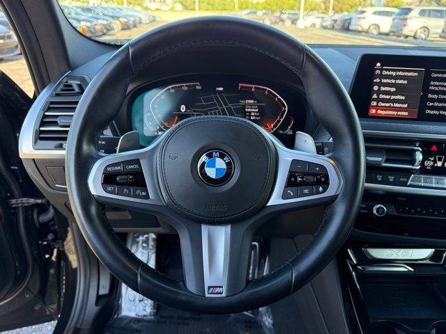 This 2023 Black Sapphire Metallic BMW X3 xDrive30i AWD is well equipped and includes these features and benefits.Connected Package Pro, Convenience Package (Driver Lumbar Support and Panoramic Moonroof), M Sport Package (Aerodynamic Kit, M Steering Wheel, Roof Rails in High-Gloss Shadowline, Shadowline Exterior Trim, Smoke Grey Aluminum Rhombicle Trim, Wheels: 19" x 7.5" M Y-Spoke Bi-Color (Style 887M), and Without Exterior Lines Designation), M Sport Package (337), Shadowline Package (Extended Shadowline Trim and M Shadowline Lights), BMW Certified Pre-Owned Certified, 8-Speed Automatic Sport, Live Cockpit Pro (incl. Navi), 12 Speakers, 3.385 Axle Ratio, 4-Wheel Disc Brakes, ABS brakes, Air Conditioning, Alloy wheels, AM/FM Radio, AM/FM radio: SiriusXM, Apple CarPlay Compatibility, Auto High-beam Headlights, Auto-dimming door mirrors, Auto-dimming Rear-View mirror, Automatic temperature control, BMW Assist eCall, BMW TeleServices, Brake assist, Bumpers: body-color, Comfort Access Keyless Entry, Comfort Access keyless entry, ConnectedDrive Services, Delay-off headlights, Driver door bin, Driver vanity mirror, Dual front impact airbags, Dual front side impact airbags, Electronic Stability Control, Emergency communication system: BMW Assist eCall, Enhanced USB & Bluetooth w/Smartphone Integration, Exterior Parking Camera Rear, Four wheel independent suspension, Front anti-roll bar, Front Bucket Seats, Front Center Armrest, Front dual zone A/C, Front reading lights, Fully automatic headlights, Genuine wood dashboard insert, Genuine wood door panel insert, Heated door mirrors, Hi-Fi Sound System, Illuminated entry, Knee airbag, Low tire pressure warning, Memory seat, Navigation, Occupant sensing airbag, Outside temperature display, Overhead airbag, Panic alarm, Passenger door bin, Passenger vanity mirror, Perforated SensaTec Upholstery, Power door mirrors, Power driver seat, Power Front Seats, Power Liftgate, Power passenger seat, Power steering, Power windows, Radio data system, Rain sensing wipers, Rear air conditioning, Rear anti-roll bar, Rear reading lights, Rear seat center armrest, Rear window defroster, Rear window wiper, Security system, SiriusXM Satellite Radio, Speed control, Speed-sensing steering, Speed-Sensitive Wipers, Split folding rear seat, Spoiler, Sport Seats, Sport steering wheel, Steering wheel mounted audio controls, Tachometer, Telescoping steering wheel, Tilt steering wheel, Traction control, Trailer Hitch, Trip computer, Turn signal indicator mirrors, Universal garage-door opener, Variably intermittent wipers, Wheels: 19" x 7.5" Y-Spoke (Style 693), Wheels: 21" Individual V-Spoke Bicolor, and WiFi Hotspot. Certified. Clean CARFAX. CARFAX One-Owner. 8-Speed Automatic Sport.