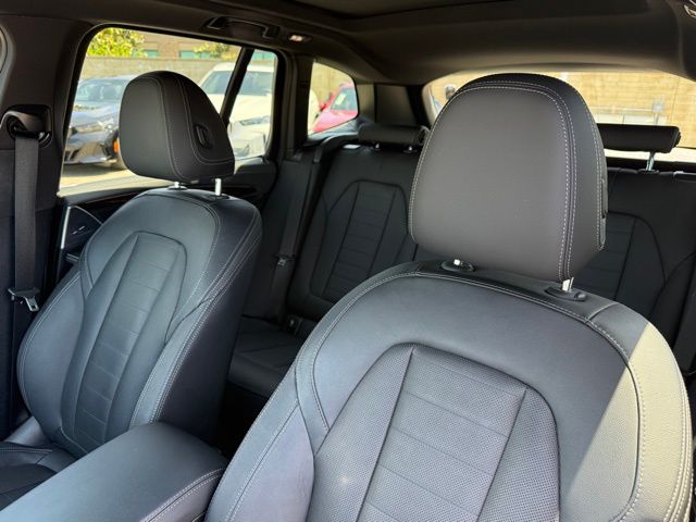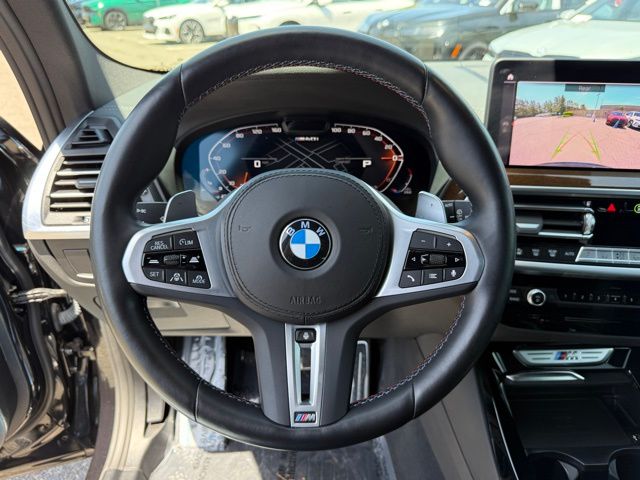 This 2024 Black Sapphire Metallic BMW X3 M40i AWD is well equipped and includes these features and benefits.Connected Package Pro, Driving Assistance Professional Package (Active Driving Assistant Pro and Extended Traffic Jam Assistant), Parking Assistance Package (Active Park Distance Control, Parking Assistant Plus, Rear-View Camera, and Surround View w/3D View), Premium Package (Head-Up Display, Heated Front Seats, and Heated Steering Wheel), BMW Certified Pre-Owned Certified, 8-Speed Automatic Sport, Live Cockpit Pro (incl. Navi), 12 Speakers, 3.385 Axle Ratio, 4-Wheel Disc Brakes, ABS brakes, Adaptive suspension, Air Conditioning, Alloy wheels, AM/FM Radio, AM/FM radio: SiriusXM, Apple CarPlay Compatibility, Auto High-beam Headlights, Auto-dimming door mirrors, Auto-dimming Rear-View mirror, Automatic temperature control, BMW Assist eCall, BMW TeleServices, Brake assist, Bumpers: body-color, Comfort Access keyless entry, ConnectedDrive Services, Dark Oak Wood Trim, Delay-off headlights, Driver door bin, Driver vanity mirror, Dual front impact airbags, Dual front side impact airbags, Electronic Stability Control, Emergency communication system: BMW Assist eCall, Enhanced USB & Bluetooth w/Smartphone Integration, Exterior Parking Camera Rear, Four wheel independent suspension, Front anti-roll bar, Front Bucket Seats, Front Center Armrest, Front dual zone A/C, Front reading lights, Front Ventilated Seats, Fully automatic headlights, Heated door mirrors, Hi-Fi Sound System, Illuminated entry, Increased Top Speed Limiter, Knee airbag, Leather steering wheel, Live Cockpit Pro w/Navigation, Low tire pressure warning, Lumbar Support, M Shadowline Lights, M Sport Brakes w/Red Calipers, Memory seat, Occupant sensing airbag, Outside temperature display, Overhead airbag, Overhead console, Panic alarm, Passenger door bin, Passenger vanity mirror, Perforated SensaTec Upholstery, Power door mirrors, Power driver seat, Power Front Seats, Power Liftgate, Power moonroof, Power passenger seat, Power steering, Power windows, Radio data system, Rain sensing wipers, Rear air conditioning, Rear anti-roll bar, Rear reading lights, Rear seat center armrest, Rear window defroster, Rear window wiper, Security system, SiriusXM w/360L & 1 Yr Platinum Plan Subscription, Speed control, Speed-sensing steering, Speed-Sensitive Wipers, Split folding rear seat, Spoiler, Sport Seats, Sport steering wheel, Steering wheel mounted audio controls, Tachometer, Telescoping steering wheel, Tilt steering wheel, Traction control, Trip computer, Turn signal indicator mirrors, Universal garage-door opener, Variably intermittent wipers, Wheels: 19" x 7.5" M Y-Spoke Bi-Color (Style 887M), Wheels: 20" M Dual-Spoke Bicolor 699M, and WiFi Hotspot. Certified. CARFAX One-Owner. 8-Speed Automatic Sport.