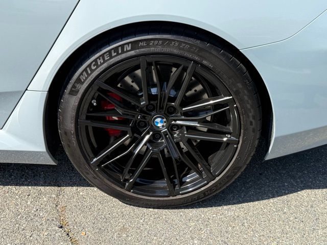 This 2025 Brooklyn Grey Metallic BMW M5 AWD is well equipped and includes these features and benefits.Connected Package Pro, Driving Assistance Professional Package (Active Driving Assistant Pro), Executive Package (BMW Iconic Glow Kidney Grille, Front & Rear Heated Seats, Front Ventilated Seats, Interior Camera, Parking Assistant Plus, and Power Rear Sunshade & Rear Side Window Shades), Black Leather, Live Cockpit Pro (incl. Navi), 18 Speakers, 4-Wheel Disc Brakes, ABS brakes, Adaptive suspension, Air Conditioning, Alloy wheels, AM/FM radio: SiriusXM, Apple CarPlay Compatibility, Auto High-beam Headlights, Auto tilt-away steering wheel, Auto-dimming door mirrors, Auto-dimming Rear-View mirror, Automatic temperature control, BMW Assist eCall, BMW Curved Display w/HUD, BMW TeleServices, Bowers & Wilkins Surround Sound, Brake assist, Bumpers: body-color, Carbon Fiber Silver Thread High Gloss Trim, Comfort Access keyless entry, ConnectedDrive Services, Delay-off headlights, Driver door bin, Driver vanity mirror, Dual front impact airbags, Dual front side impact airbags, Electronic Stability Control, Emergency communication system: BMW Assist eCall, Extended Merino Leather Upholstery, Exterior Parking Camera Rear, Four wheel independent suspension, Front anti-roll bar, Front Bucket Seats, Front Center Armrest, Front dual zone A/C, Front reading lights, Fully automatic headlights, Heads-Up Display, Heated door mirrors, Heated Front Seats, Heated front seats, Heated steering wheel, Illuminated entry, Leather steering wheel, Low tire pressure warning, M Compound Brakes w/Red Calipers, M Multi-Function Seats, Memory seat, Occupant sensing airbag, Outside temperature display, Overhead airbag, Panic alarm, Passenger door bin, Passenger vanity mirror, Personal eSIM 5G, Power door mirrors, Power driver seat, Power Front Seats, Power passenger seat, Power steering, Power windows, Radio data system, Radio: AM/FM Audio System, Rain sensing wipers, Rear air conditioning, Rear anti-roll bar, Rear dual zone A/C, Rear reading lights, Rear seat center armrest, Rear window defroster, Security system, SiriusXM Satellite Radio w/1-Year Subscription, Speed control, Speed-sensing steering, Speed-Sensitive Wipers, Split folding rear seat, Sport steering wheel, Steering wheel memory, Steering wheel mounted audio controls, Tachometer, Telescoping steering wheel, Tilt steering wheel, Traction control, Trip computer, Turn signal indicator mirrors, Universal garage-door opener, Variably intermittent wipers, Wheels: 20" x 10.5" Fr & 21" x 11" Rr Jet Black, Wheels: 20" x 10.5" Fr & 21" x 11" Rr M Dual-Spoke, and Wireless Device Charging. Clean CARFAX. CARFAX One-Owner. Black Leather.